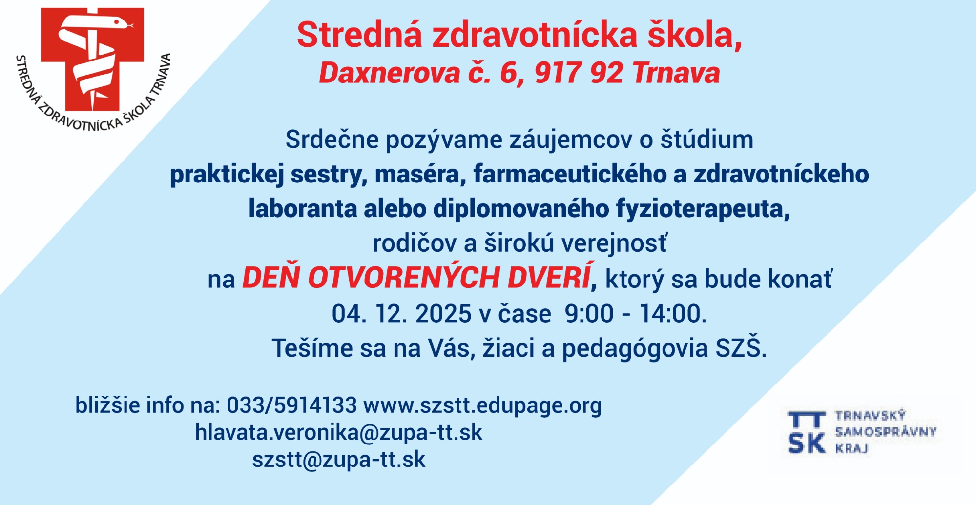 DEŇ OTVORENÝCH DVERÍ sa uskutoční dňa 10. decembra 2025 so začiatkom od 10:00 do 14:00, na adrese Jána Bottu 31, Trnava.