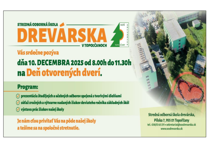 DEŇ OTVORENÝCH DVERÍ sa uskutoční dňa 10. decembra 2025 so začiatkom od 12:00 do 17:00, na adrese Coburgova 39, Trnava